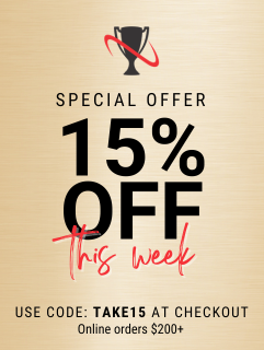 Our advertised price on medals includes personalisation and a complimentary neck ribbon in your choice of colour.
